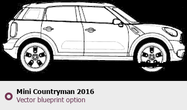 Raster blueprint of the 2016 Mini Countryman Hatchback. This free downloadable image can be used for graphic projects, digital design, and 3D modeling. The file provides accurate exterior proportions of the vehicle. Model year: 2016. Body type: Hatchback.
