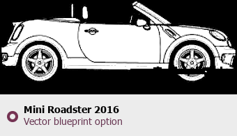 Raster blueprint of the 2016 Mini Roadster Hatchback. This free downloadable image can be used for graphic projects, digital design, and 3D modeling. The file provides accurate exterior proportions of the vehicle. Model year: 2016. Body type: Hatchback.