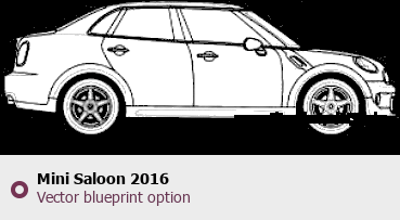 Raster blueprint of the 2016 Mini Saloon Hatchback. This free downloadable image can be used for graphic projects, digital design, and 3D modeling. The file provides accurate exterior proportions of the vehicle. Model year: 2016. Body type: Hatchback.