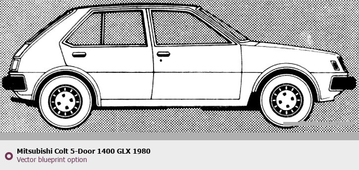 Raster blueprint of the 1980 Mitsubishi Colt 5-Door 1400 GLX Tag. This free downloadable image can be used for graphic projects, digital design, and 3D modeling. The file provides accurate exterior proportions of the vehicle. Model year: 1980. Body type: Tag.