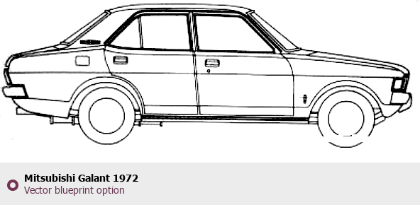 Raster blueprint of the 1972 Mitsubishi Galant Tag. This free downloadable image can be used for graphic projects, digital design, and 3D modeling. The file provides accurate exterior proportions of the vehicle. Model year: 1972. Body type: Tag.
