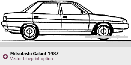Raster blueprint of the 1987 Mitsubishi Galant Tag. This free downloadable image can be used for graphic projects, digital design, and 3D modeling. The file provides accurate exterior proportions of the vehicle. Model year: 1987. Body type: Tag.