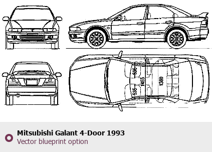 Raster blueprint of the 1993 Mitsubishi Galant 4-Door Tag. This free downloadable image can be used for graphic projects, digital design, and 3D modeling. The file provides accurate exterior proportions of the vehicle. Model year: 1993. Body type: Tag.