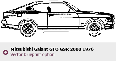 Raster blueprint of the 1976 Mitsubishi Galant GTO GSR 2000 Tag. This free downloadable image can be used for graphic projects, digital design, and 3D modeling. The file provides accurate exterior proportions of the vehicle. Model year: 1976. Body type: Tag.