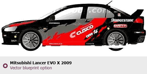 Raster blueprint of the 2009 Mitsubishi Lancer EVO X Tag. This free downloadable image can be used for graphic projects, digital design, and 3D modeling. The file provides accurate exterior proportions of the vehicle. Model year: 2009. Body type: Tag.