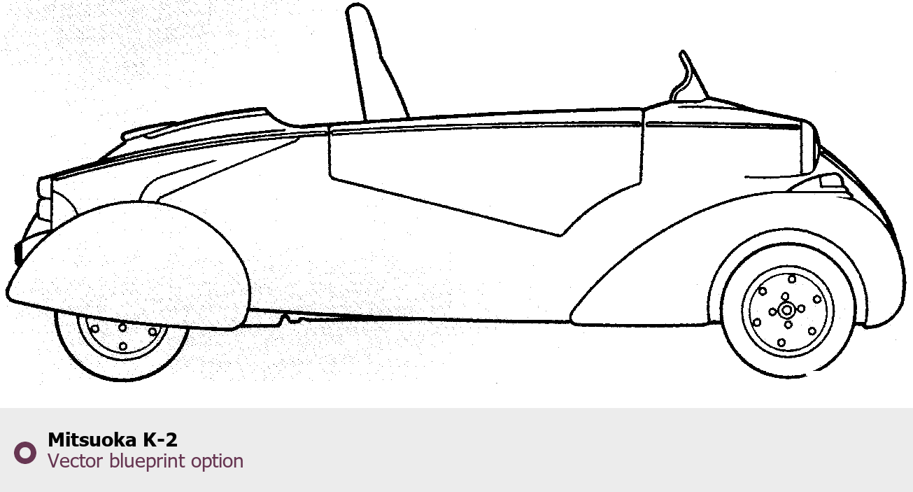 Raster blueprint of the Mitsuoka K-2 Tag. This free downloadable image can be used for graphic projects, digital design, and 3D modeling. The file provides accurate exterior proportions of the vehicle. Body type: Tag.