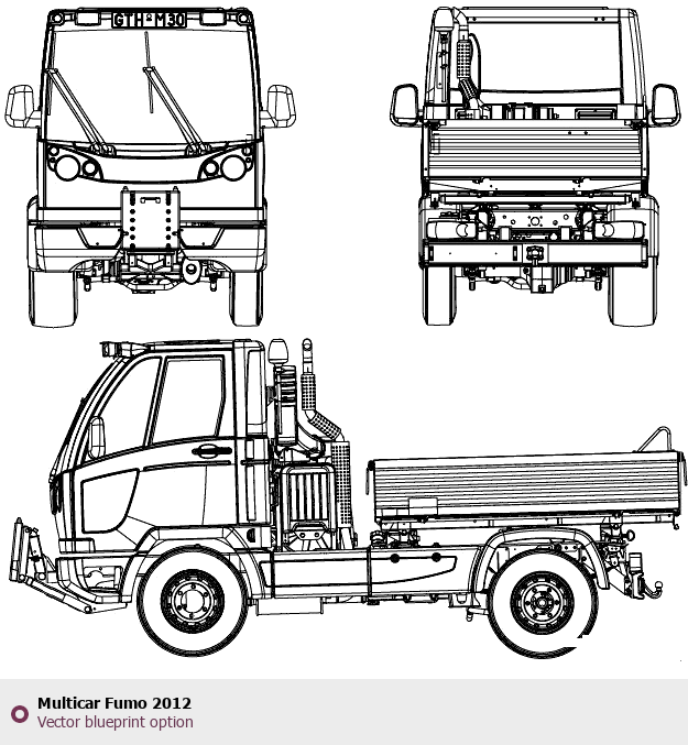 Raster blueprint of the 2012 Multicar Fumo Tag. This free downloadable image can be used for graphic projects, digital design, and 3D modeling. The file provides accurate exterior proportions of the vehicle. Model year: 2012. Body type: Tag.