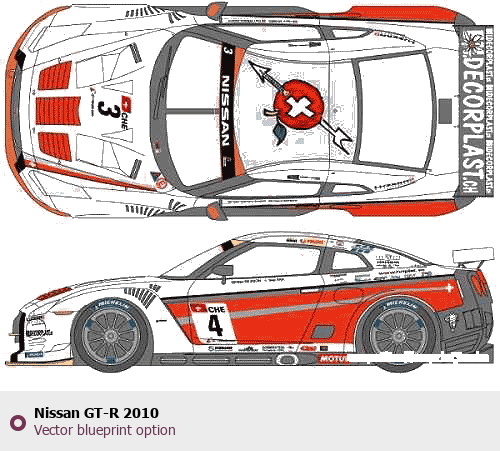 Raster blueprint of the 2010 Nissan GT-R Coupe. This free downloadable image can be used for graphic projects, digital design, and 3D modeling. The file provides accurate exterior proportions of the vehicle. Model year: 2010. Body type: Coupe.