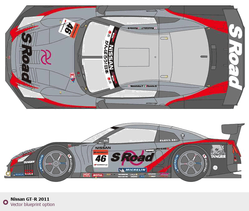 Raster blueprint of the 2011 Nissan GT-R Coupe. This free downloadable image can be used for graphic projects, digital design, and 3D modeling. The file provides accurate exterior proportions of the vehicle. Model year: 2011. Body type: Coupe.