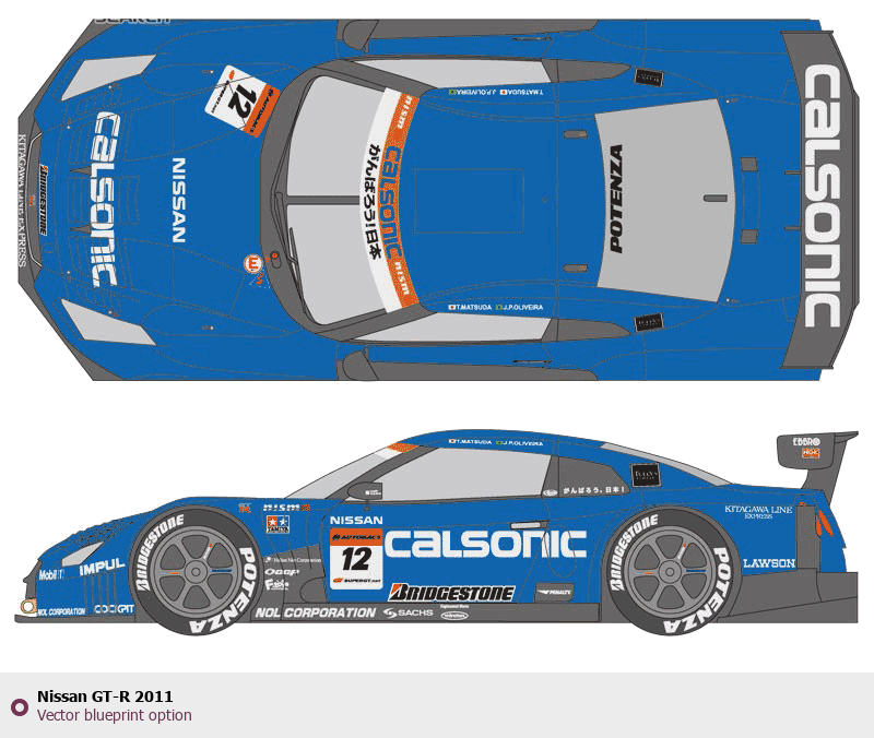 Raster blueprint of the 2011 Nissan GT-R Coupe. This free downloadable image can be used for graphic projects, digital design, and 3D modeling. The file provides accurate exterior proportions of the vehicle. Model year: 2011. Body type: Coupe.