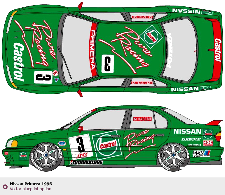 Raster blueprint of the 1996 Nissan Primera Tag. This free downloadable image can be used for graphic projects, digital design, and 3D modeling. The file provides accurate exterior proportions of the vehicle. Model year: 1996. Body type: Tag.