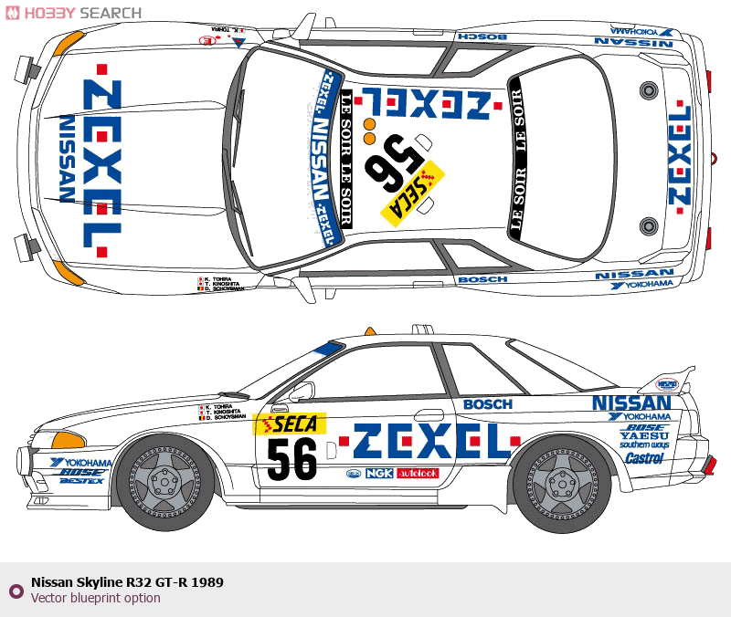 Raster blueprint of the 1989 Nissan Skyline R32 GT-R Tag. This free downloadable image can be used for graphic projects, digital design, and 3D modeling. The file provides accurate exterior proportions of the vehicle. Model year: 1989. Body type: Tag.