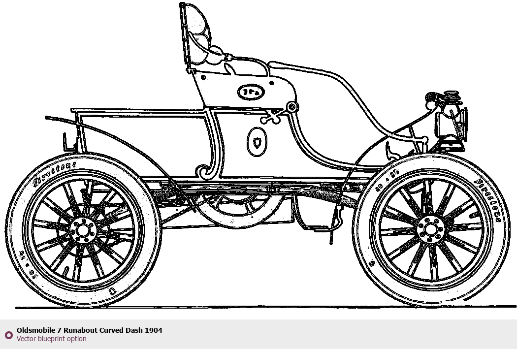 Raster blueprint of the 1904 Oldsmobile 7 Runabout Curved Dash Tag. This free downloadable image can be used for graphic projects, digital design, and 3D modeling. The file provides accurate exterior proportions of the vehicle. Model year: 1904. Body type: Tag.