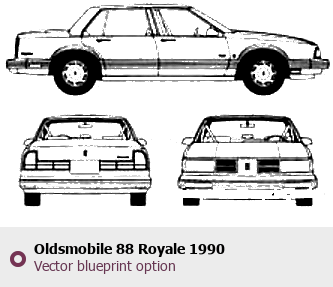 Raster blueprint of the 1990 Oldsmobile 88 Royale Tag. This free downloadable image can be used for graphic projects, digital design, and 3D modeling. The file provides accurate exterior proportions of the vehicle. Model year: 1990. Body type: Tag.