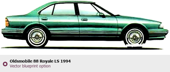 Raster blueprint of the 1994 Oldsmobile 88 Royale LS Tag. This free downloadable image can be used for graphic projects, digital design, and 3D modeling. The file provides accurate exterior proportions of the vehicle. Model year: 1994. Body type: Tag.