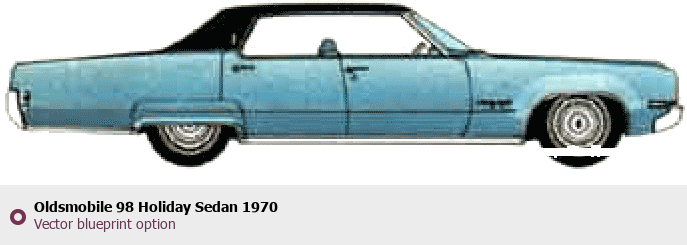 Raster blueprint of the 1970 Oldsmobile 98 Holiday Sedan Sedan. This free downloadable image can be used for graphic projects, digital design, and 3D modeling. The file provides accurate exterior proportions of the vehicle. Model year: 1970. Body type: Sedan.