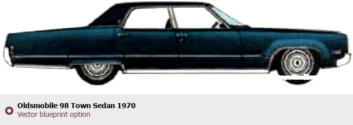 Raster blueprint of the 1970 Oldsmobile 98 Town Sedan Sedan. This free downloadable image can be used for graphic projects, digital design, and 3D modeling. The file provides accurate exterior proportions of the vehicle. Model year: 1970. Body type: Sedan.