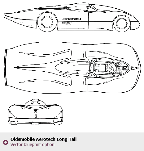Raster blueprint of the Oldsmobile Aerotech Long Tail Tag. This free downloadable image can be used for graphic projects, digital design, and 3D modeling. The file provides accurate exterior proportions of the vehicle. Body type: Tag.