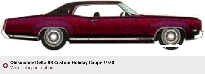 Raster blueprint of the 1970 Oldsmobile Delta 88 Custom Holiday Coupe Coupe. This free downloadable image can be used for graphic projects, digital design, and 3D modeling. The file provides accurate exterior proportions of the vehicle. Model year: 1970. Body type: Coupe.