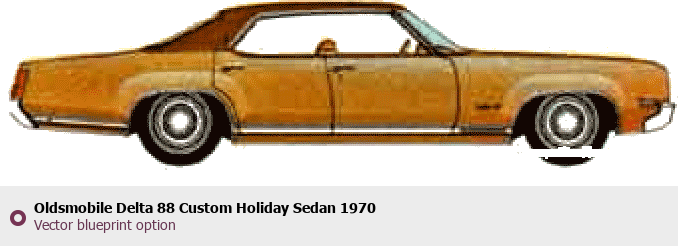 Raster blueprint of the 1970 Oldsmobile Delta 88 Custom Holiday Sedan Sedan. This free downloadable image can be used for graphic projects, digital design, and 3D modeling. The file provides accurate exterior proportions of the vehicle. Model year: 1970. Body type: Sedan.