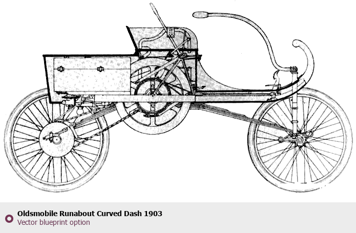 Raster blueprint of the 1903 Oldsmobile Runabout Curved Dash Tag. This free downloadable image can be used for graphic projects, digital design, and 3D modeling. The file provides accurate exterior proportions of the vehicle. Model year: 1903. Body type: Tag.