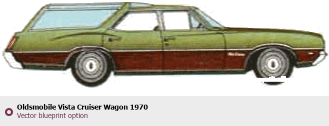 Raster blueprint of the 1970 Oldsmobile Vista Cruiser Wagon Wagon. This free downloadable image can be used for graphic projects, digital design, and 3D modeling. The file provides accurate exterior proportions of the vehicle. Model year: 1970. Body type: Wagon.