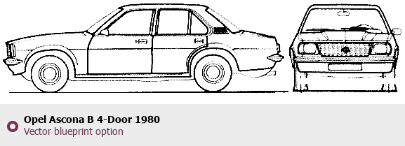Raster blueprint of the 1980 Opel Ascona B 4-Door Sedan. This free downloadable image can be used for graphic projects, digital design, and 3D modeling. The file provides accurate exterior proportions of the vehicle. Model year: 1980. Body type: Sedan.