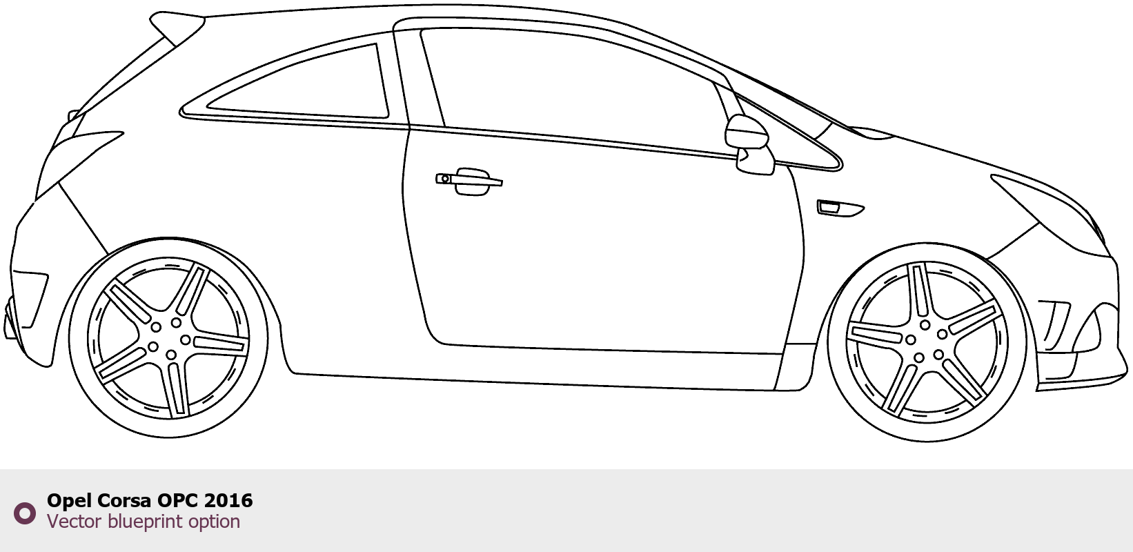 Raster blueprint of the 2016 Opel Corsa OPC Hatchback. This free downloadable image can be used for graphic projects, digital design, and 3D modeling. The file provides accurate exterior proportions of the vehicle. Model year: 2016. Body type: Hatchback.