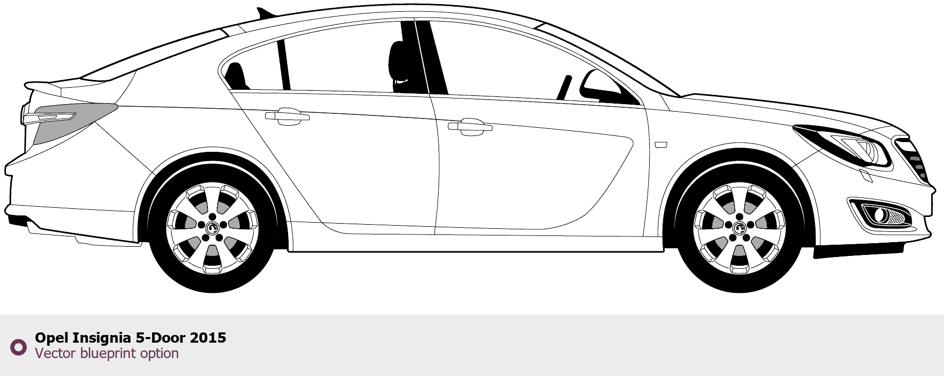 Raster blueprint of the 2015 Opel Insignia 5-Door Tag. This free downloadable image can be used for graphic projects, digital design, and 3D modeling. The file provides accurate exterior proportions of the vehicle. Model year: 2015. Body type: Tag.