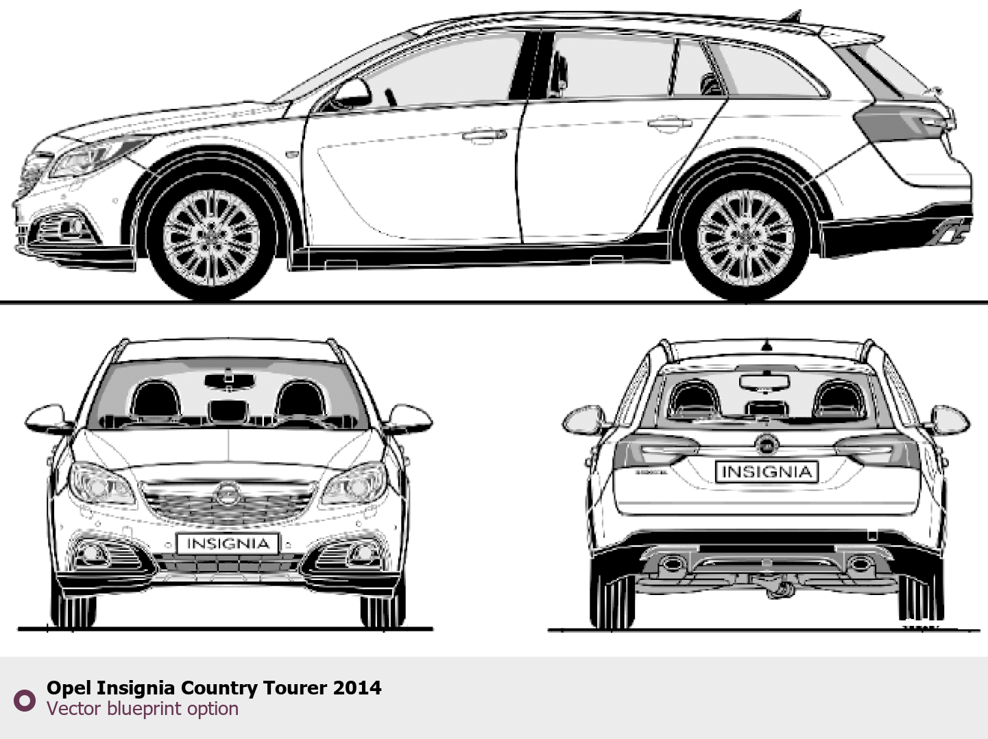 Raster blueprint of the 2014 Opel Insignia Country Tourer Tag. This free downloadable image can be used for graphic projects, digital design, and 3D modeling. The file provides accurate exterior proportions of the vehicle. Model year: 2014. Body type: Tag.