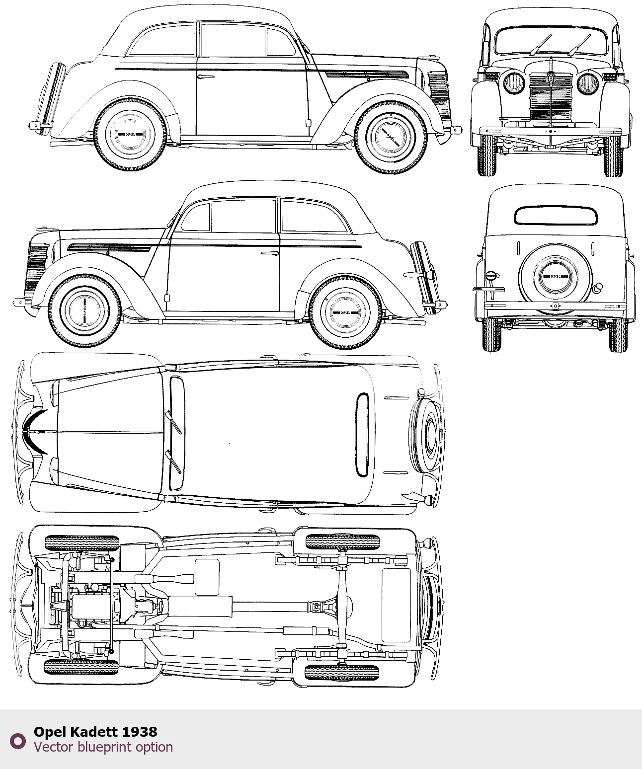 Raster blueprint of the 1938 Opel Kadett Tag. This free downloadable image can be used for graphic projects, digital design, and 3D modeling. The file provides accurate exterior proportions of the vehicle. Model year: 1938. Body type: Tag.