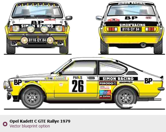 Raster blueprint of the 1979 Opel Kadett C GTE Rallye Tag. This free downloadable image can be used for graphic projects, digital design, and 3D modeling. The file provides accurate exterior proportions of the vehicle. Model year: 1979. Body type: Tag.