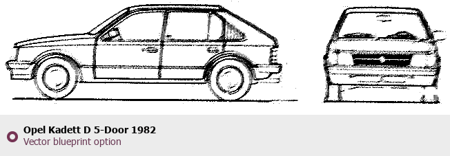 Raster blueprint of the 1982 Opel Kadett D 5-Door Tag. This free downloadable image can be used for graphic projects, digital design, and 3D modeling. The file provides accurate exterior proportions of the vehicle. Model year: 1982. Body type: Tag.