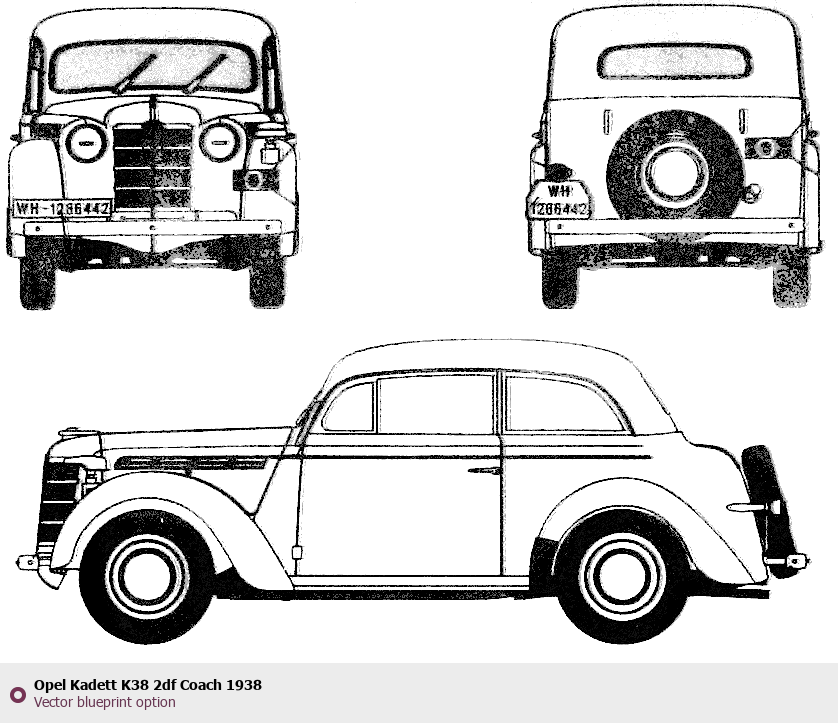 Raster blueprint of the 1938 Opel Kadett K38 2df Coach Bus. This free downloadable image can be used for graphic projects, digital design, and 3D modeling. The file provides accurate exterior proportions of the vehicle. Model year: 1938. Body type: Bus.