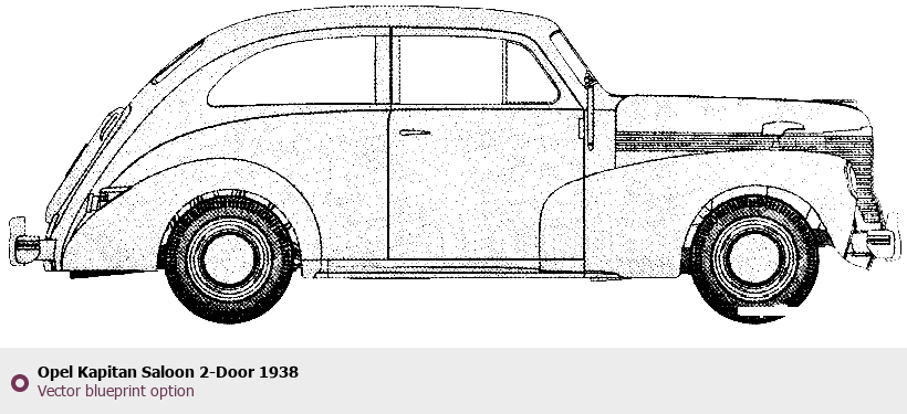 Raster blueprint of the 1938 Opel Kapitan Saloon 2-Door Sedan. This free downloadable image can be used for graphic projects, digital design, and 3D modeling. The file provides accurate exterior proportions of the vehicle. Model year: 1938. Body type: Sedan.