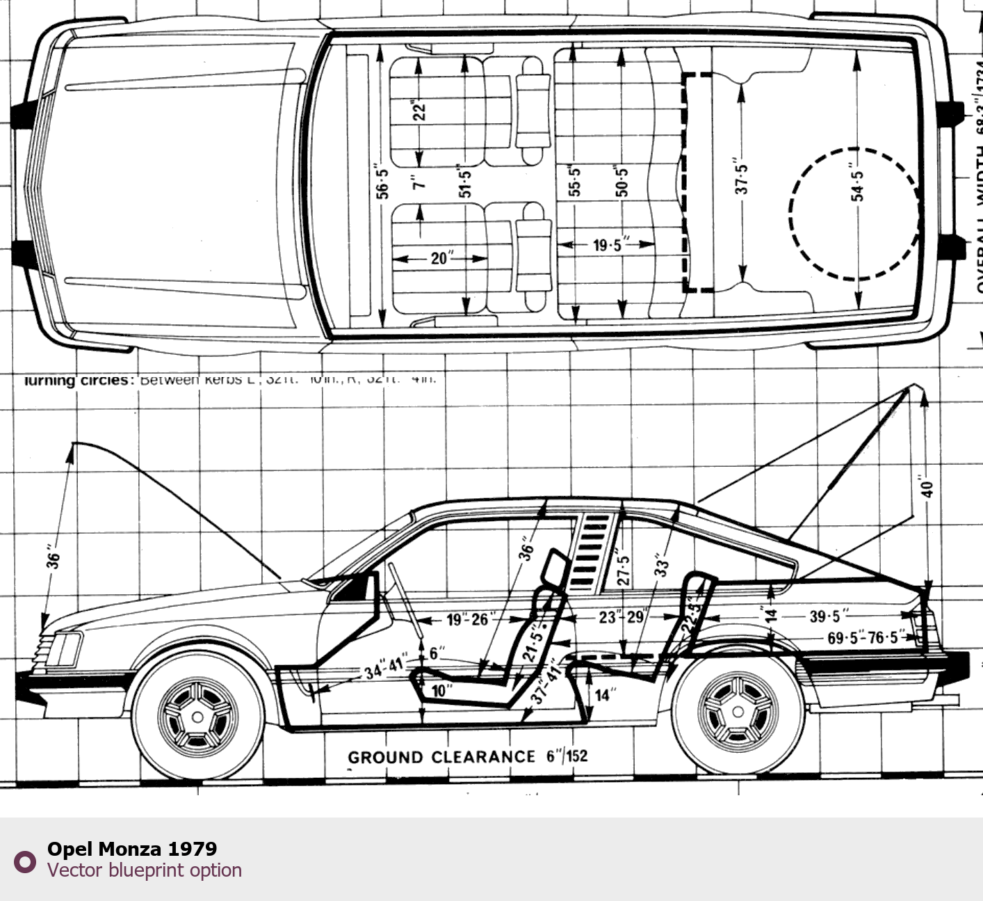 Raster blueprint of the 1979 Opel Monza Tag. This free downloadable image can be used for graphic projects, digital design, and 3D modeling. The file provides accurate exterior proportions of the vehicle. Model year: 1979. Body type: Tag.