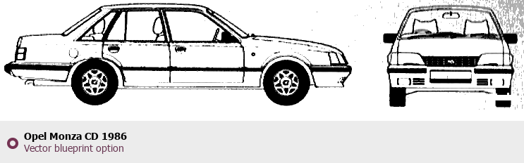 Raster blueprint of the 1986 Opel Monza CD Tag. This free downloadable image can be used for graphic projects, digital design, and 3D modeling. The file provides accurate exterior proportions of the vehicle. Model year: 1986. Body type: Tag.
