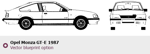 Raster blueprint of the 1987 Opel Monza GT-E Roadster. This free downloadable image can be used for graphic projects, digital design, and 3D modeling. The file provides accurate exterior proportions of the vehicle. Model year: 1987. Body type: Roadster.