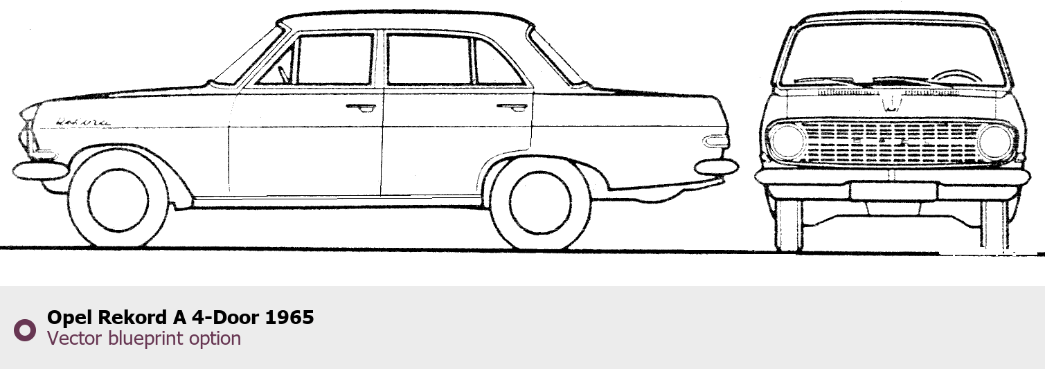 Raster blueprint of the 1965 Opel Rekord A 4-Door Wagon. This free downloadable image can be used for graphic projects, digital design, and 3D modeling. The file provides accurate exterior proportions of the vehicle. Model year: 1965. Body type: Wagon.