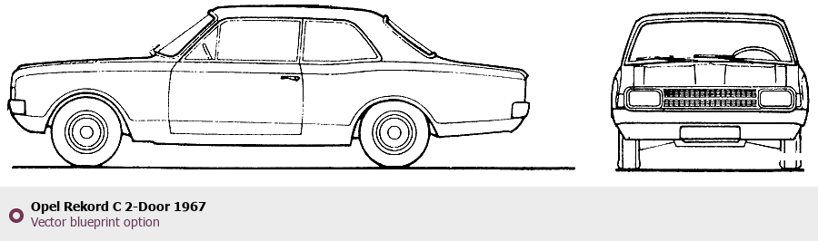Raster blueprint of the 1967 Opel Rekord C 2-Door Wagon. This free downloadable image can be used for graphic projects, digital design, and 3D modeling. The file provides accurate exterior proportions of the vehicle. Model year: 1967. Body type: Wagon.