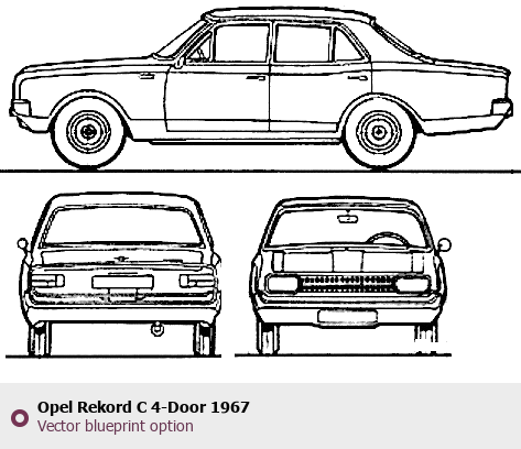 Raster blueprint of the 1967 Opel Rekord C 4-Door Wagon. This free downloadable image can be used for graphic projects, digital design, and 3D modeling. The file provides accurate exterior proportions of the vehicle. Model year: 1967. Body type: Wagon.