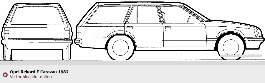 Raster blueprint of the 1982 Opel Rekord E Caravan Wagon. This free downloadable image can be used for graphic projects, digital design, and 3D modeling. The file provides accurate exterior proportions of the vehicle. Model year: 1982. Body type: Wagon.