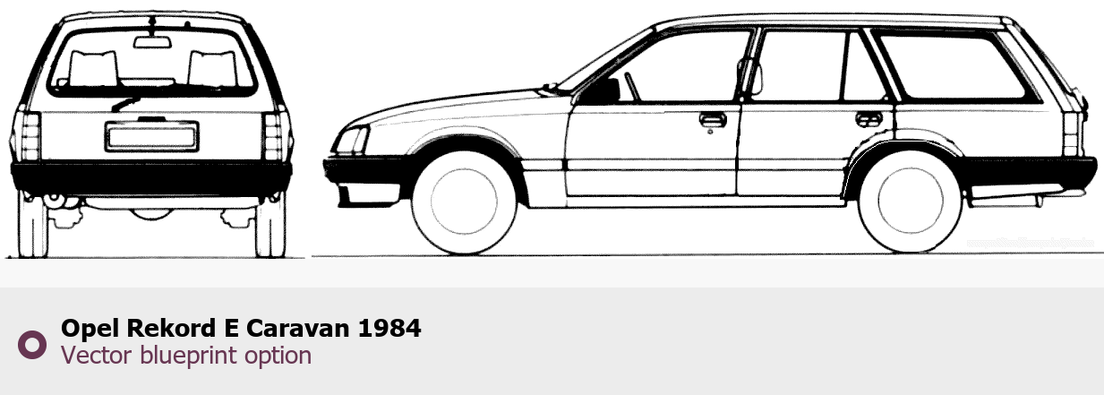 Raster blueprint of the 1984 Opel Rekord E Caravan Wagon. This free downloadable image can be used for graphic projects, digital design, and 3D modeling. The file provides accurate exterior proportions of the vehicle. Model year: 1984. Body type: Wagon.