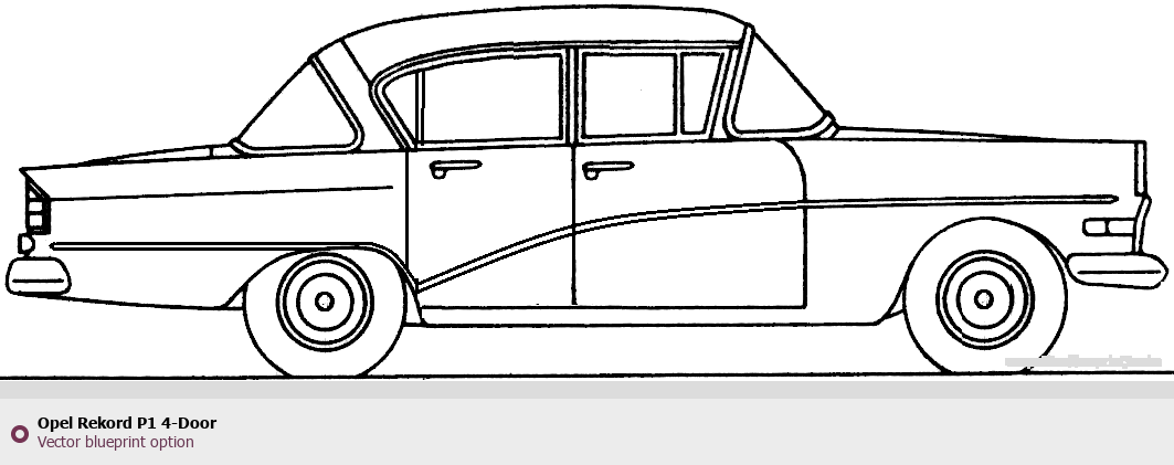 Raster blueprint of the Opel Rekord P1 4-Door Wagon. This free downloadable image can be used for graphic projects, digital design, and 3D modeling. The file provides accurate exterior proportions of the vehicle. Body type: Wagon.