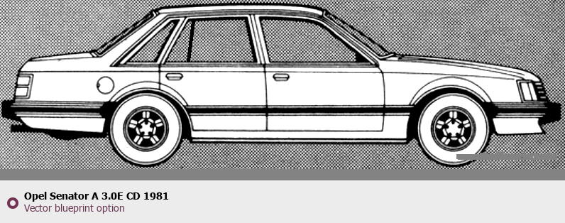 Raster blueprint of the 1981 Opel Senator A 3.0E CD Tag. This free downloadable image can be used for graphic projects, digital design, and 3D modeling. The file provides accurate exterior proportions of the vehicle. Model year: 1981. Body type: Tag.