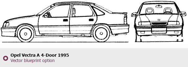 Raster blueprint of the 1995 Opel Vectra A 4-Door Tag. This free downloadable image can be used for graphic projects, digital design, and 3D modeling. The file provides accurate exterior proportions of the vehicle. Model year: 1995. Body type: Tag.