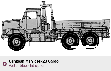 Raster blueprint of the Oshkosh MTVR Mk23 Cargo Heavy Truck. This free downloadable image can be used for graphic projects, digital design, and 3D modeling. The file provides accurate exterior proportions of the vehicle. Body type: Heavy Truck.