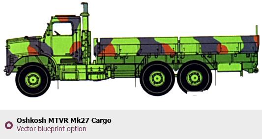 Raster blueprint of the Oshkosh MTVR Mk27 Cargo Heavy Truck. This free downloadable image can be used for graphic projects, digital design, and 3D modeling. The file provides accurate exterior proportions of the vehicle. Body type: Heavy Truck.