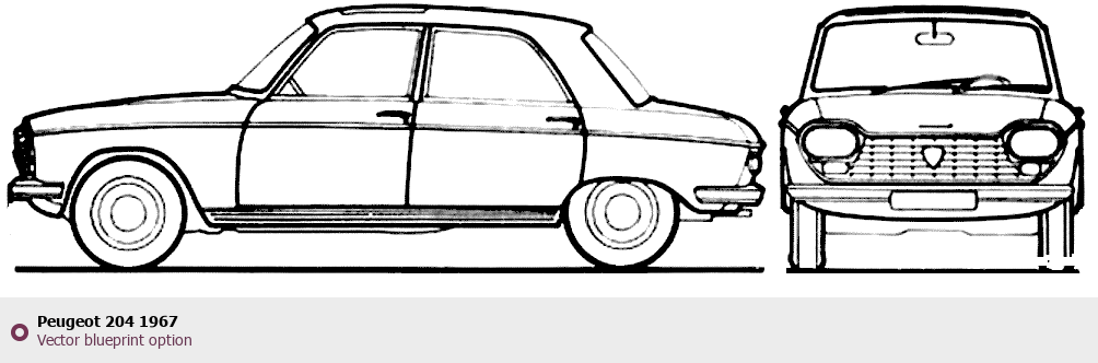 Raster blueprint of the 1967 Peugeot 204 Tag. This free downloadable image can be used for graphic projects, digital design, and 3D modeling. The file provides accurate exterior proportions of the vehicle. Model year: 1967. Body type: Tag.