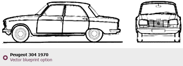 Raster blueprint of the 1970 Peugeot 304 Tag. This free downloadable image can be used for graphic projects, digital design, and 3D modeling. The file provides accurate exterior proportions of the vehicle. Model year: 1970. Body type: Tag.